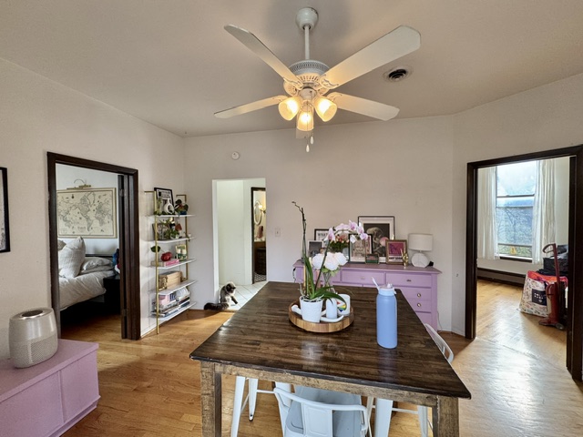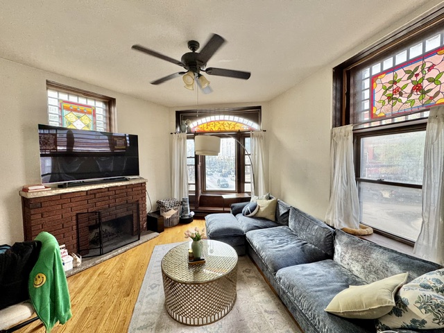 Hardwood floors, central air, remodeled kitchen with dishwasher, faux fireplace, Juliet balcony, laundry in building. Directly above a popular bar/restaurant. Walk to DePaul, Fullerton CTA, Oz Park. Small pets negotiable. Available June 1!